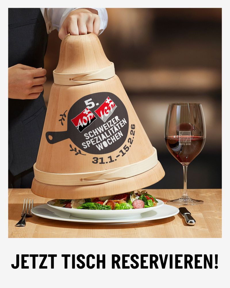 Neben den berühmten Produkten der gastronomischen Tradition bietet diese Initiative die ideale Gelegenheit, typisch schweizerische Rebsorten zu entdecken, die der breiten Öffentlichkeit teilweise noch unbekannt sind. Von der würzigen Eleganz des Humagne Rouge über die mineralische Struktur des Completer, die Finesse des Pinot Noir und die Abgerundetheit des Merlot bis hin zur Frische und Typizität des Chasselas – Schweizer Weine unterstreichen auf authentische Weise die Spezialitäten mit AOP- und IGP-Gütesiegel. Ein natürlicher Dialog zwischen Terroir, Tradition und Tafelfreuden.