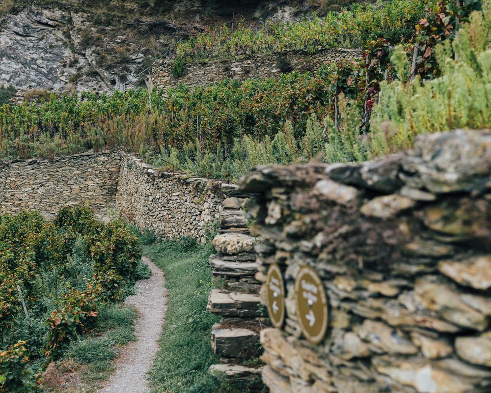 In Valais alone there are an estimated 3,000 kilometres, if you lined them up, of terraced vineyard stone walls. You could probably double the figure if you add to these the walls built by vignerons in Lavaux, Chablais in Vaud, and Ticino and Graubünden, to name only the main areas. The most spectacular ones overlook the capital of Valais and are made of dry stone walls – no mortar, no cement, simply an ancient know-how to fight the combination of the passage of time, gravity and the elements. The walls are emblematic of the vineyards, but they also serve as a refuge for a great many fauna.