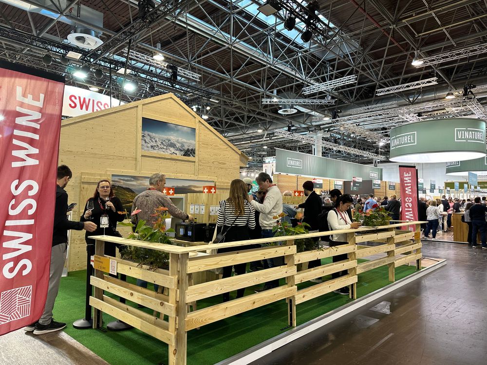Les visiteurs ont découvert un stand au design traditionnel, comprenant un chalet en bois. Dans une zone dédiée, ils ont pu déguster librement les vins suisses. Au final, il y avait une sélection de plus de 100 vins des six régions viticoles.